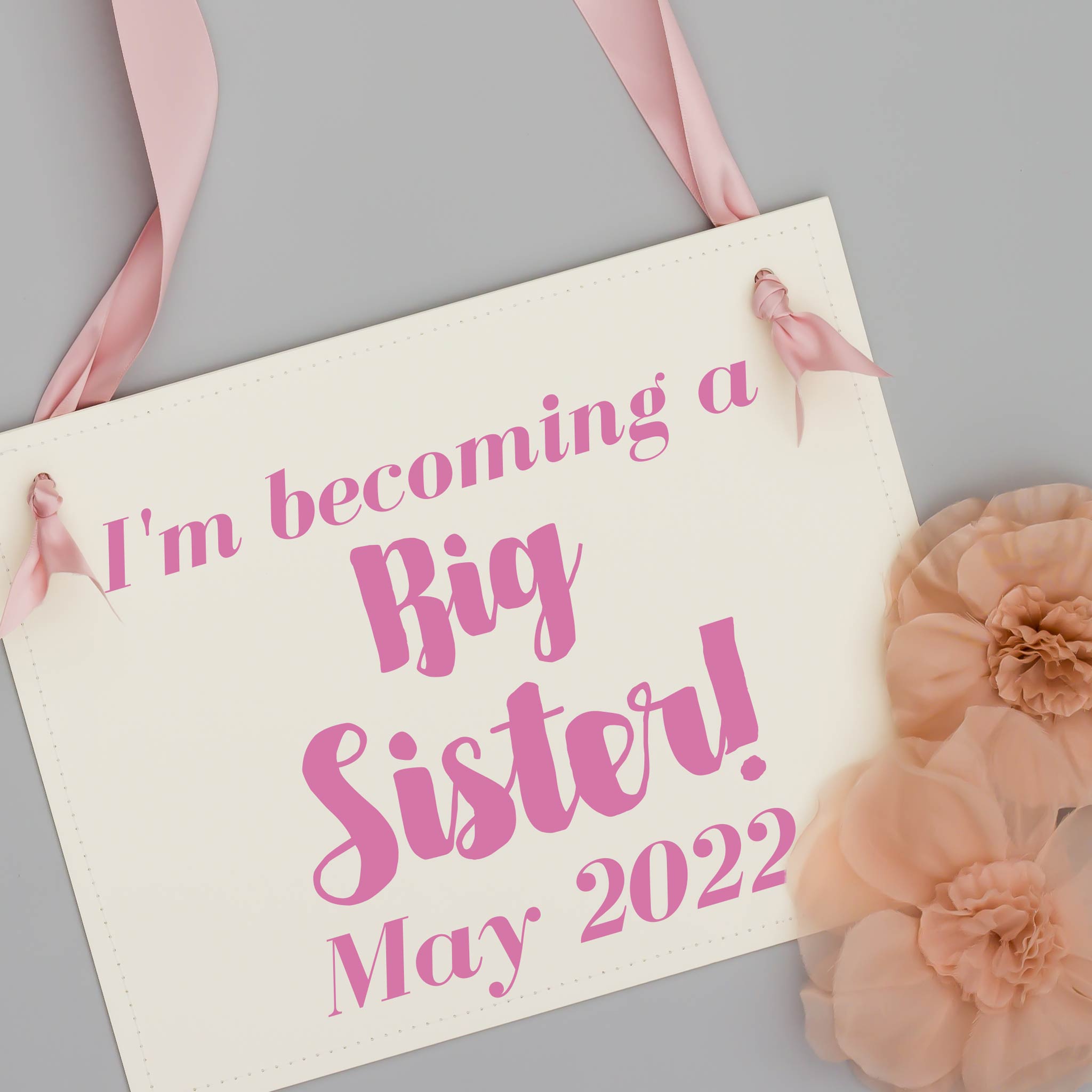 Big sister pregnancy announcement banner that lets your little one share the exciting news. Perfect for maternity photo shoots or baby shower decor, this sweet sign turns a proud moment into a keepsake. A simple, heartfelt way to announce your growing family.