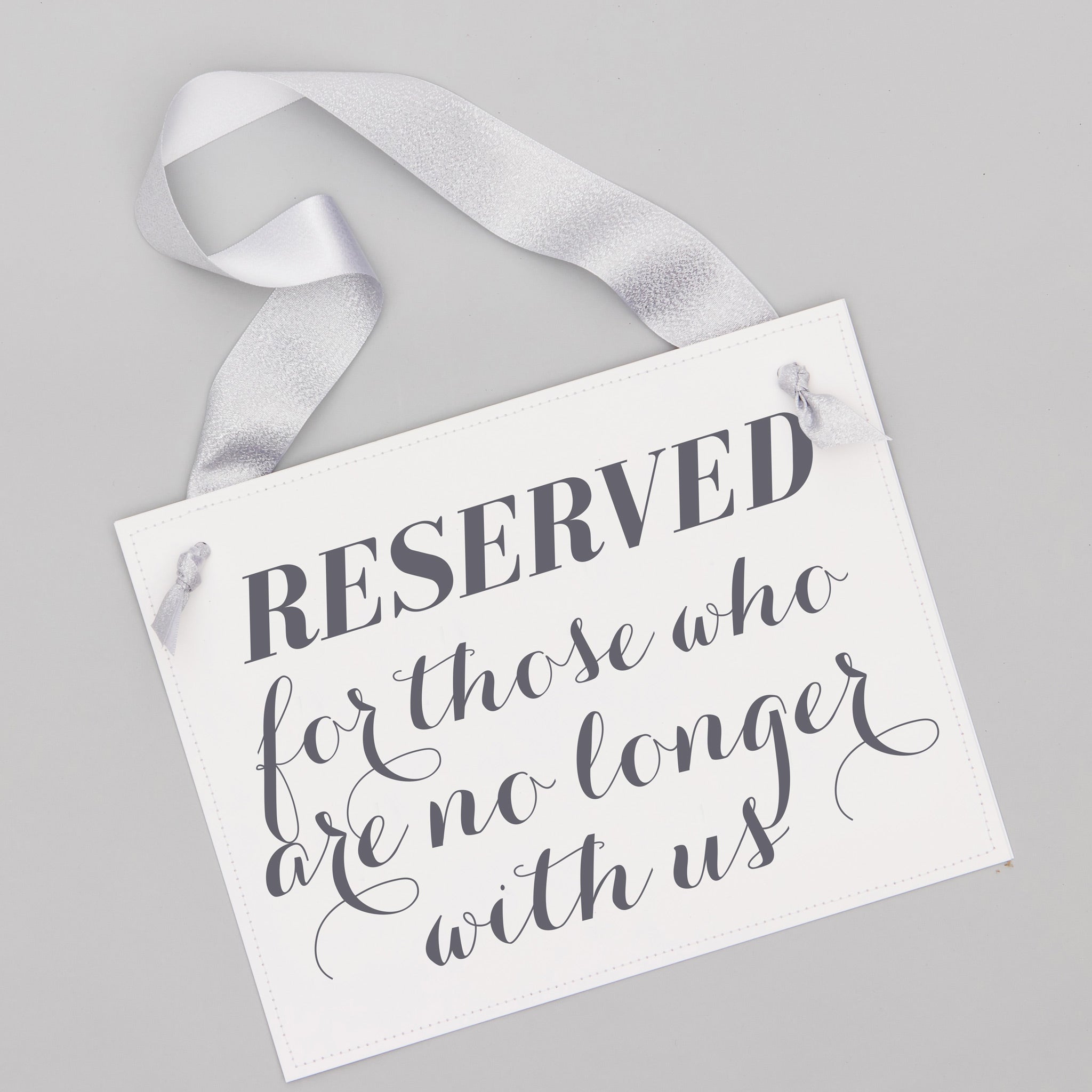 Memorial wedding chair sign to honor loved ones who have passed. This simple banner saves a seat for those no longer with us, adding a quiet moment of love to your ceremony. A heartfelt way to keep their memory close on your big day.