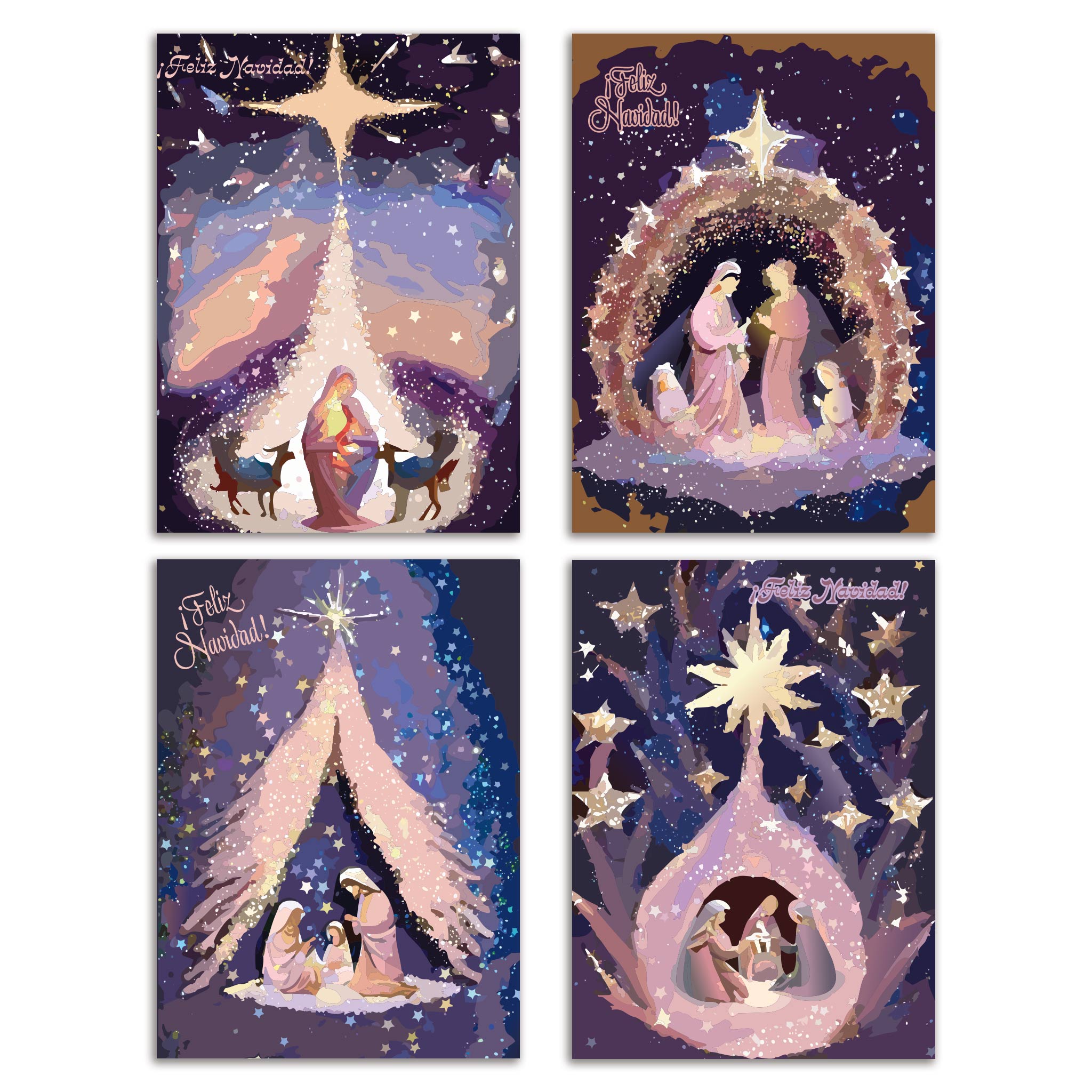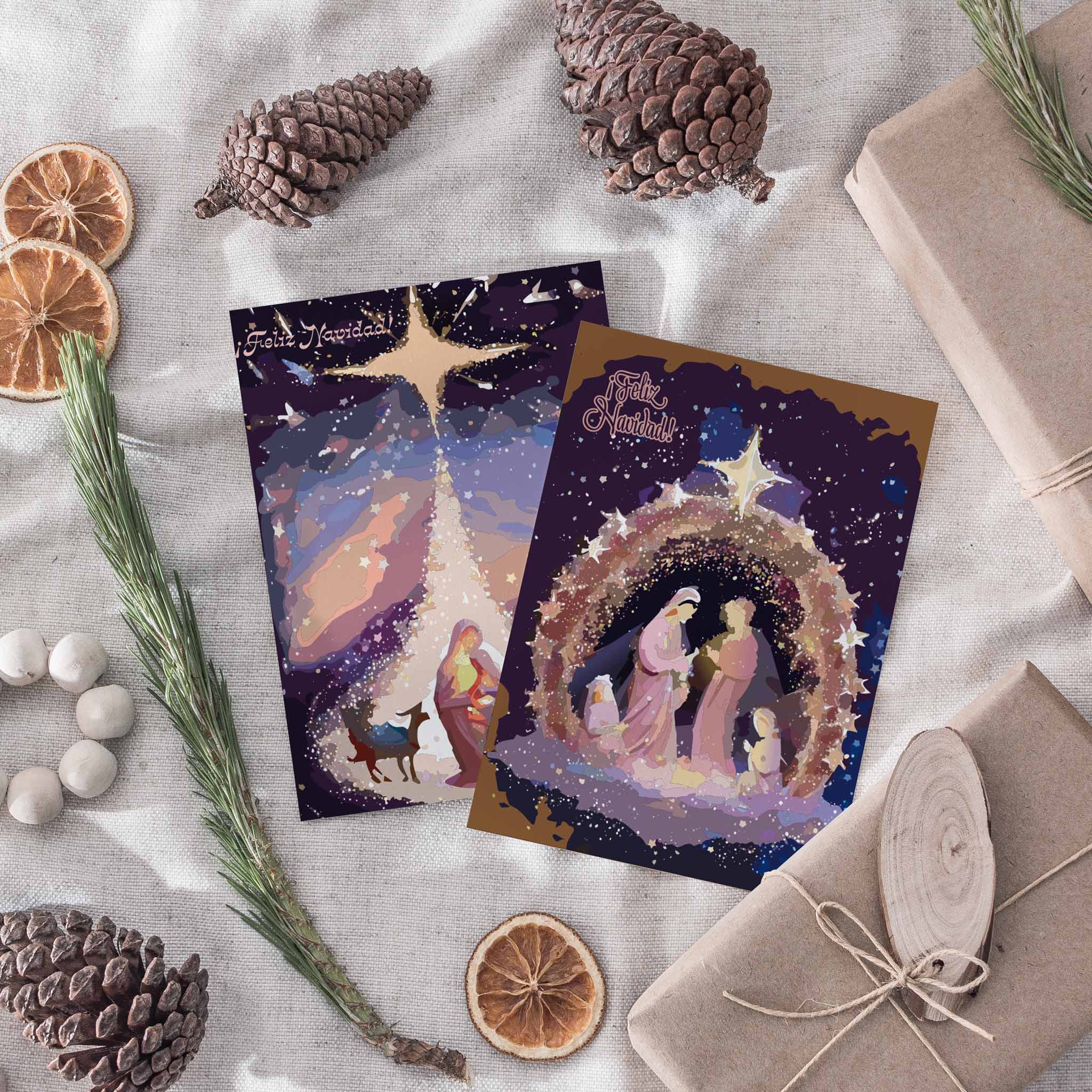 These Feliz Navidad Christmas cards bring the Nativity scene to life in soft, glowing colors that feel both peaceful and sacred. Perfect for sharing faith and warmth with family, church friends, or anyone who holds the true meaning of the season close to heart. A beautiful way to send blessings in Spanish or English this holiday.