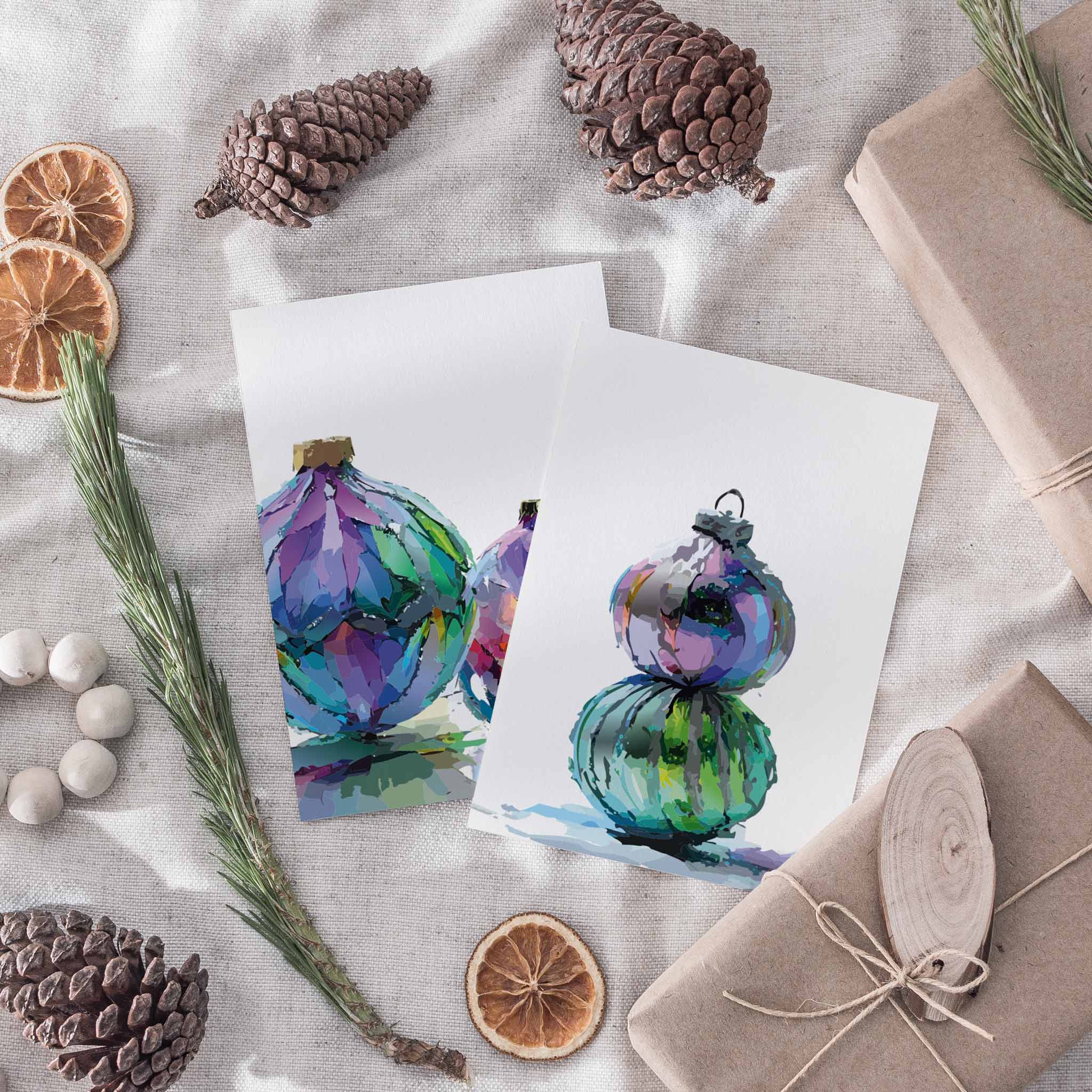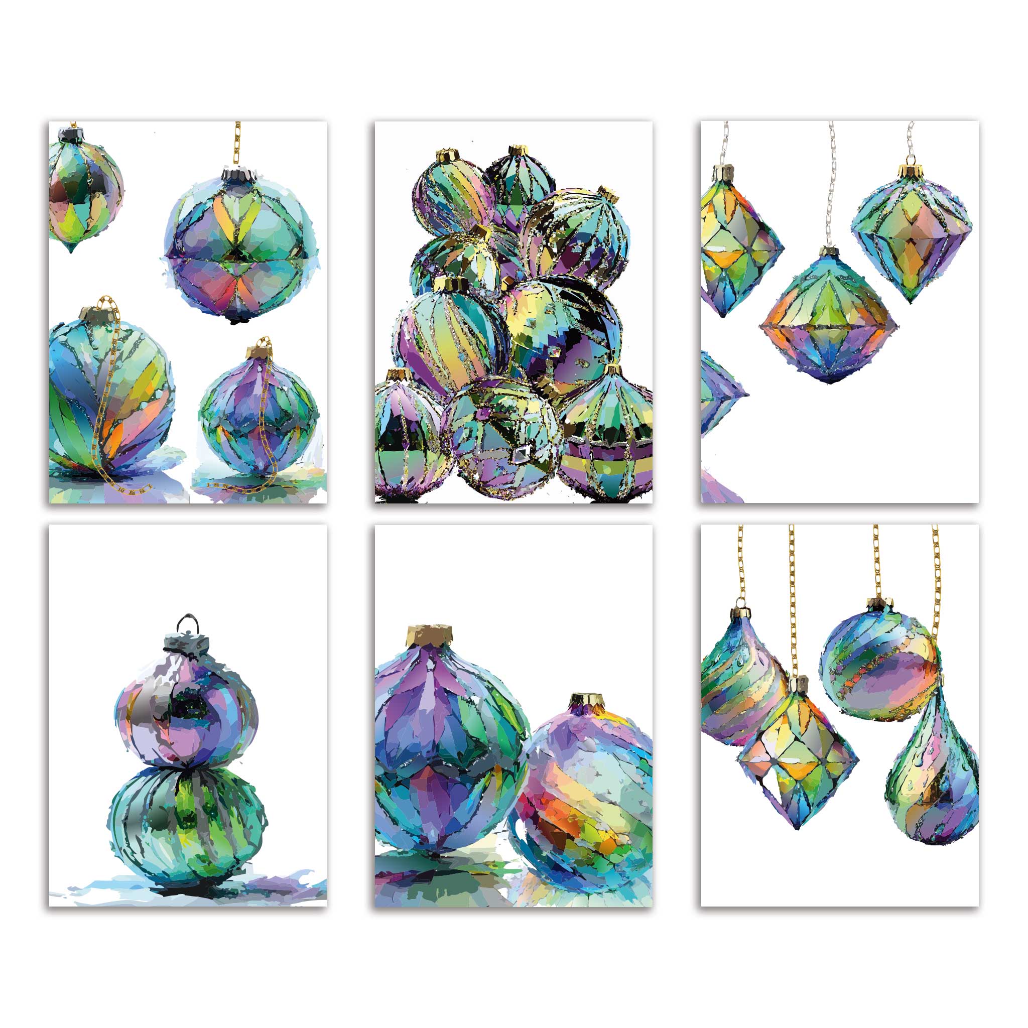 Colorful Christmas cards that feel like art. Bold, jewel-toned ornaments bring a modern twist to classic holiday cheer—perfect for anyone who wants their greetings to stand out. Send warmth with a little extra sparkle.