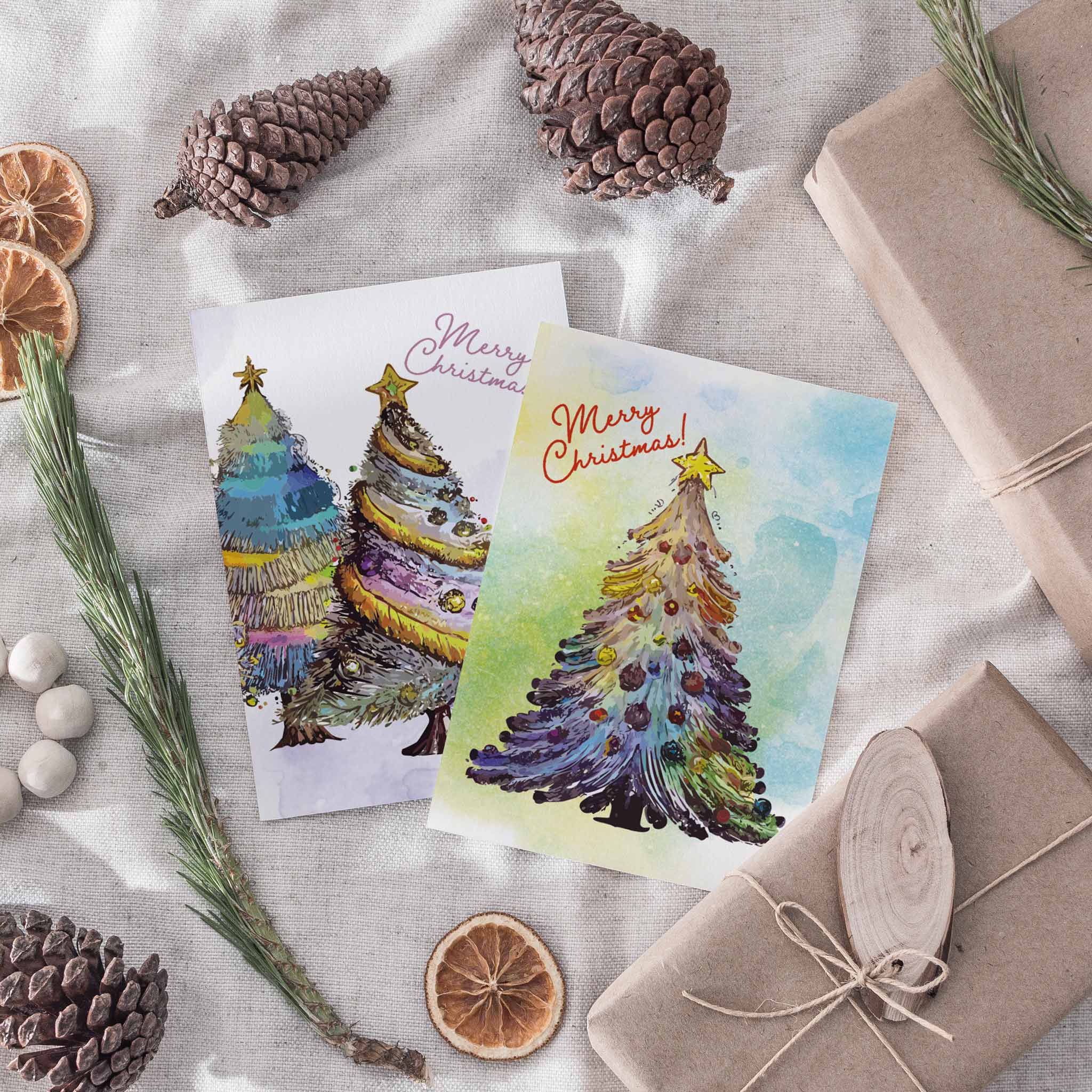 Sparkly Christmas cards that look like tiny works of art. The bright, whimsical trees bring a playful glow to your holiday greetings—perfect for friends who love a little extra magic. Send warmth and wonder without saying too much.