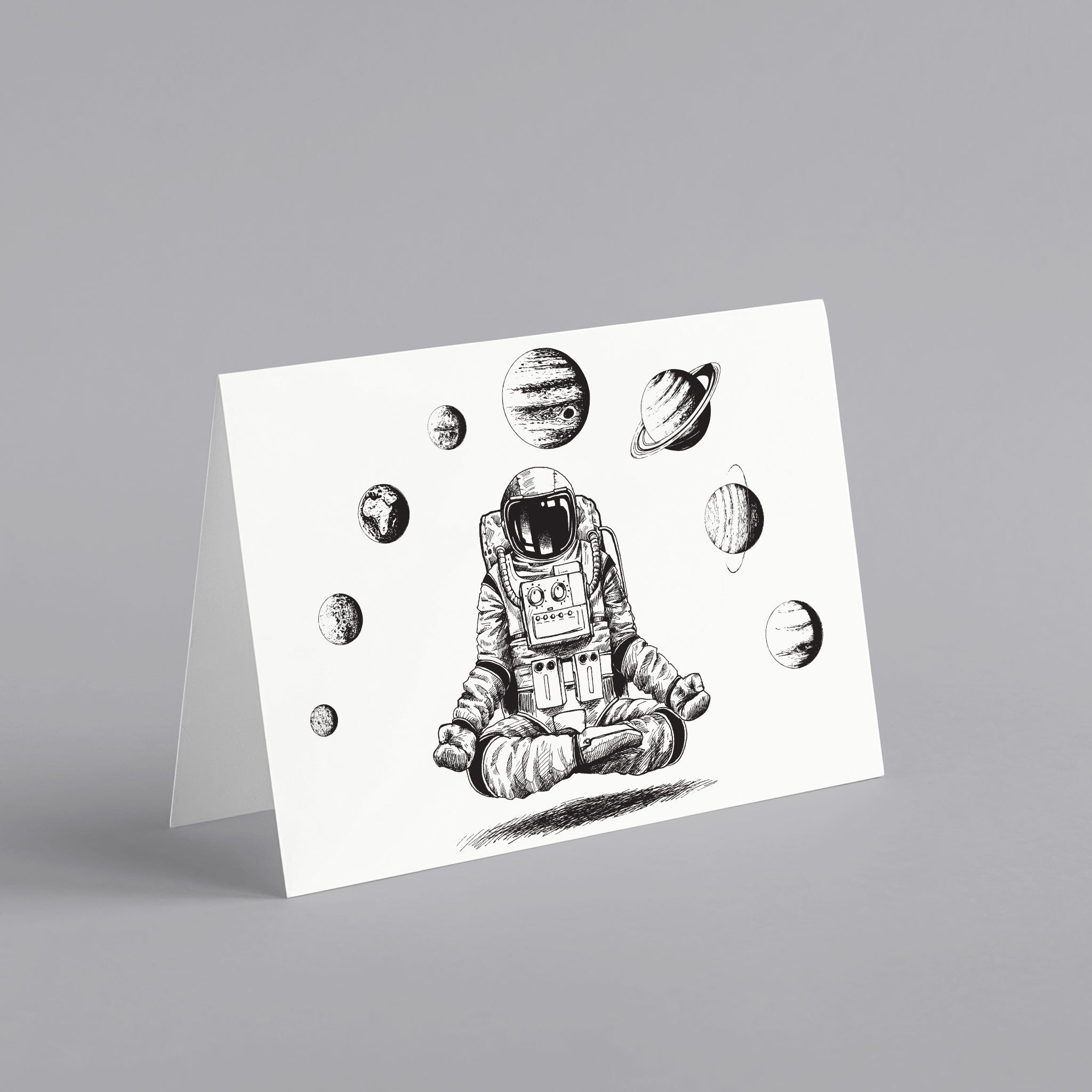 Cosmic meditation cards for the friend who finds peace in the stars. A calm astronaut floats through black and white space, bringing zen vibes to any moment worth marking. Perfect for yoga lovers, stargazers, or anyone who needs a quiet reminder to breathe.