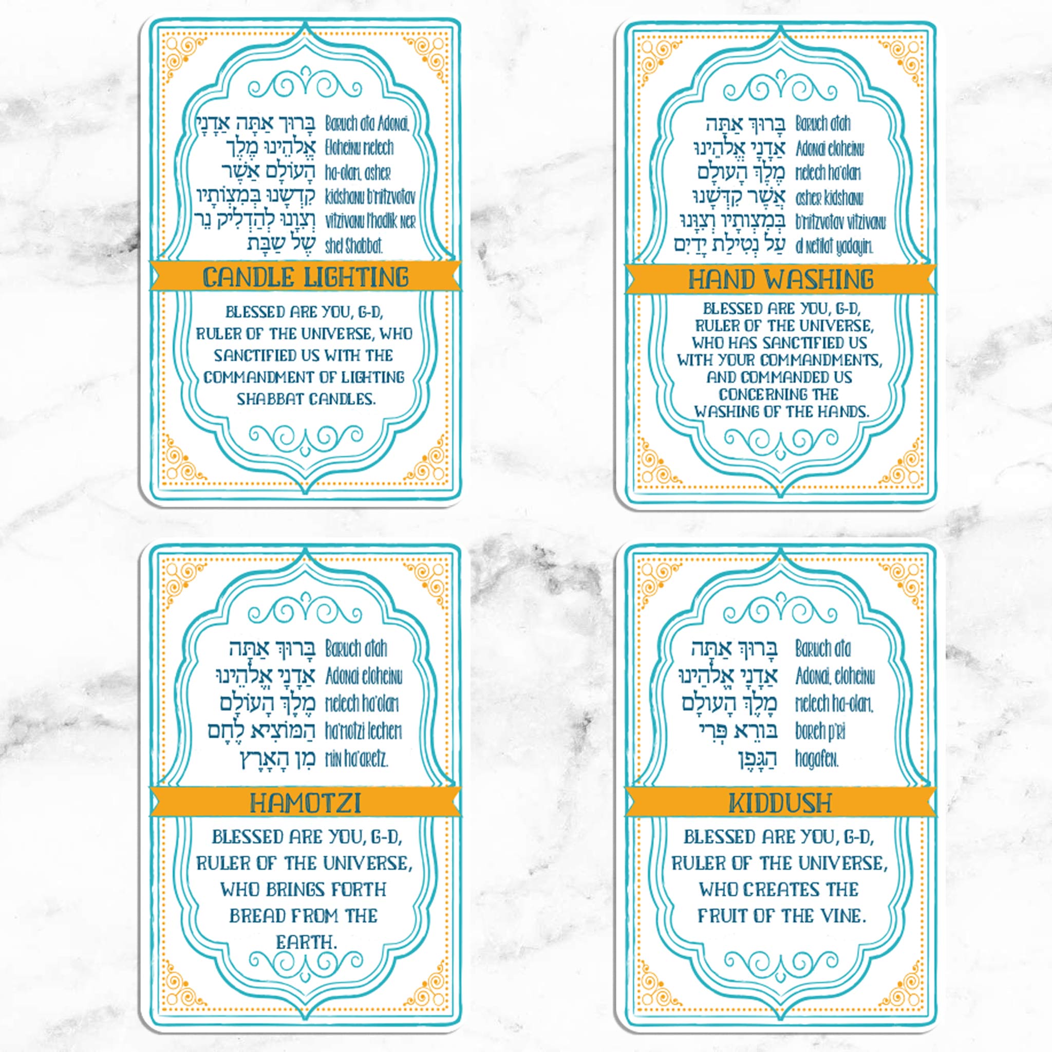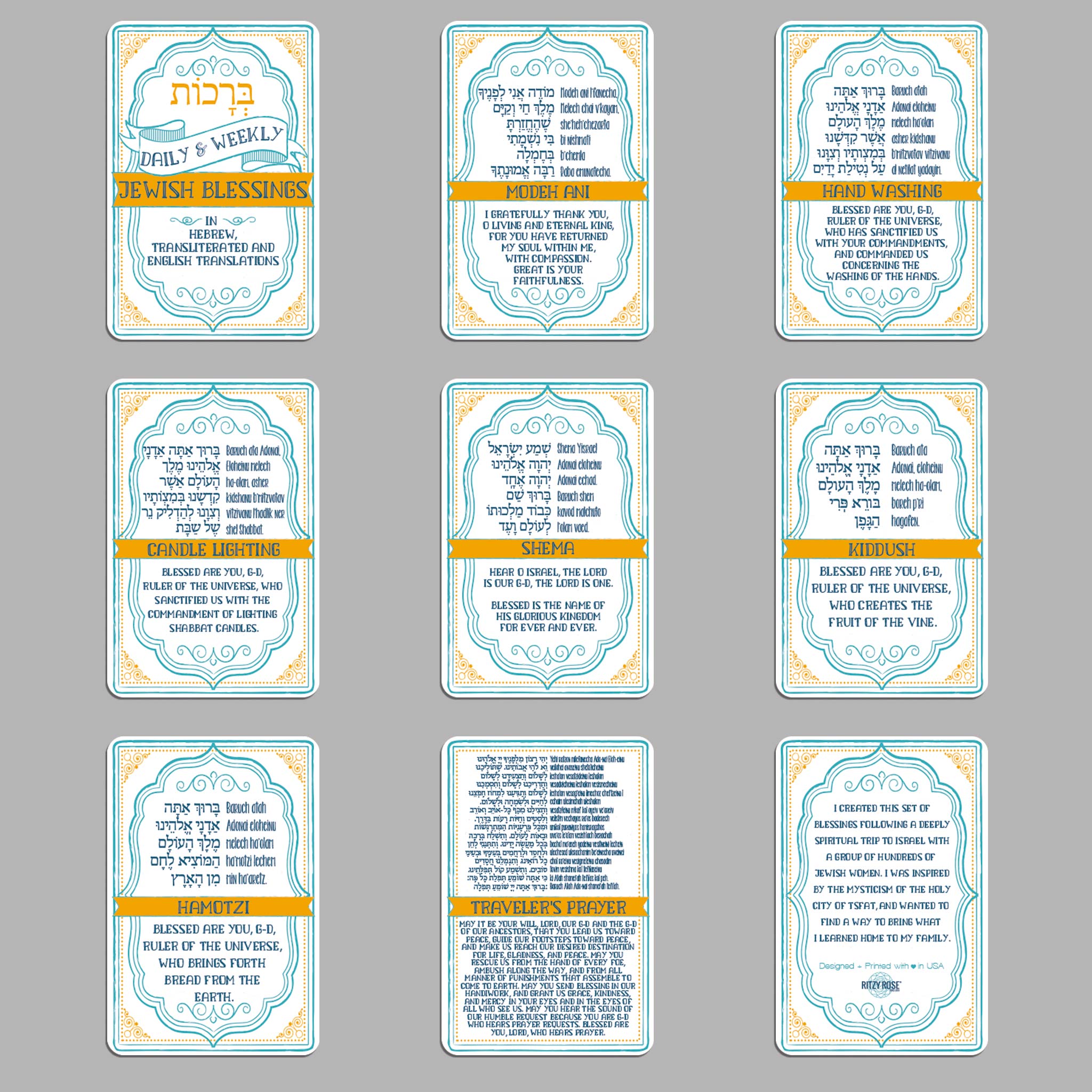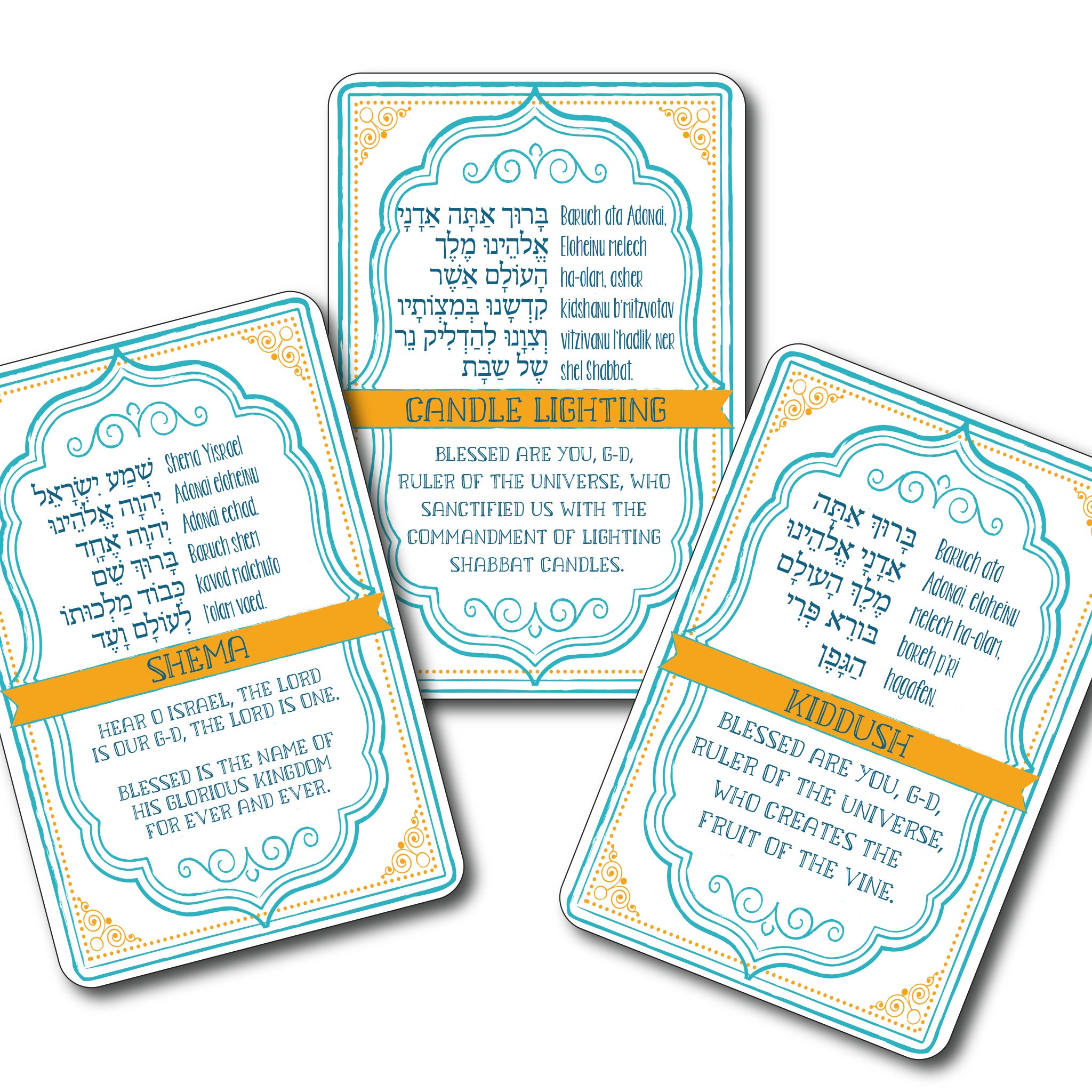 Jewish prayer cards bring beloved Hebrew blessings home in a way the whole family can follow. Each card pairs the original Hebrew with clear English translation and transliteration—perfect for Shabbat candle lighting, Shema, Modeh Ani, and more. A meaningful gift for bat mitzvahs, new homes, or anyone building a Jewish practice they can actually use.
