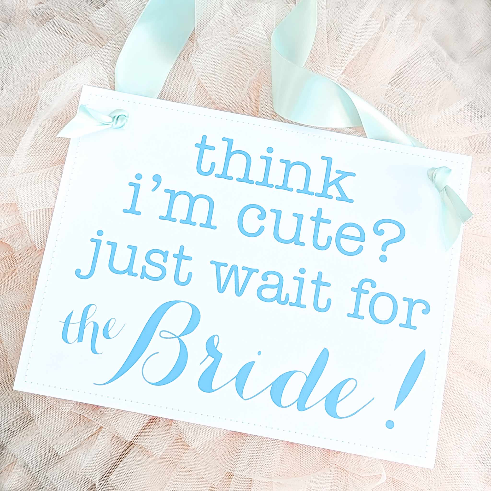 This funny ring bearer sign adds a sweet, cheeky moment to your ceremony that guests won't forget. The playful "Just Wait for the Bride" message lets your little one steal the show while building excitement for your big entrance. Customize the colors and ribbon to match your wedding style.