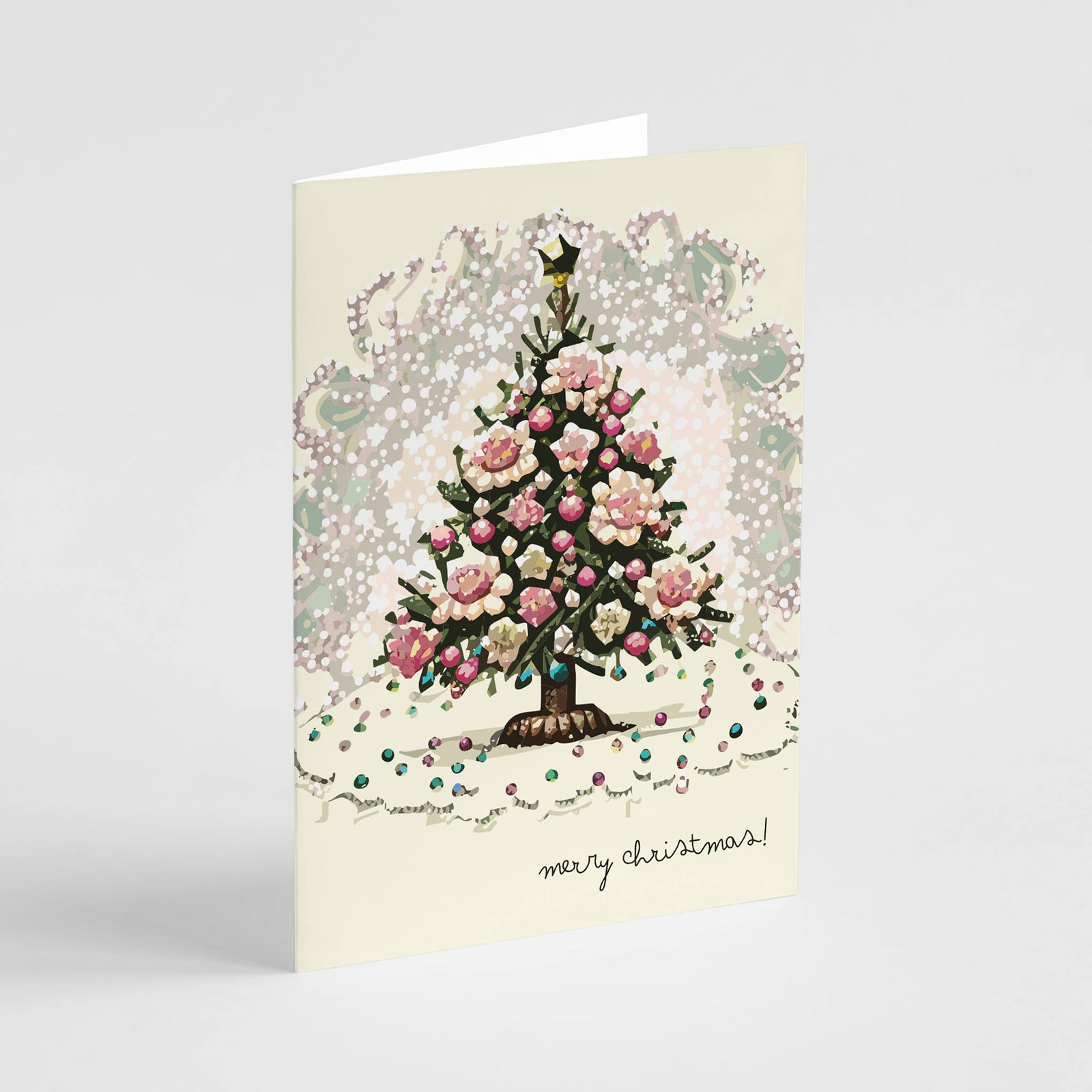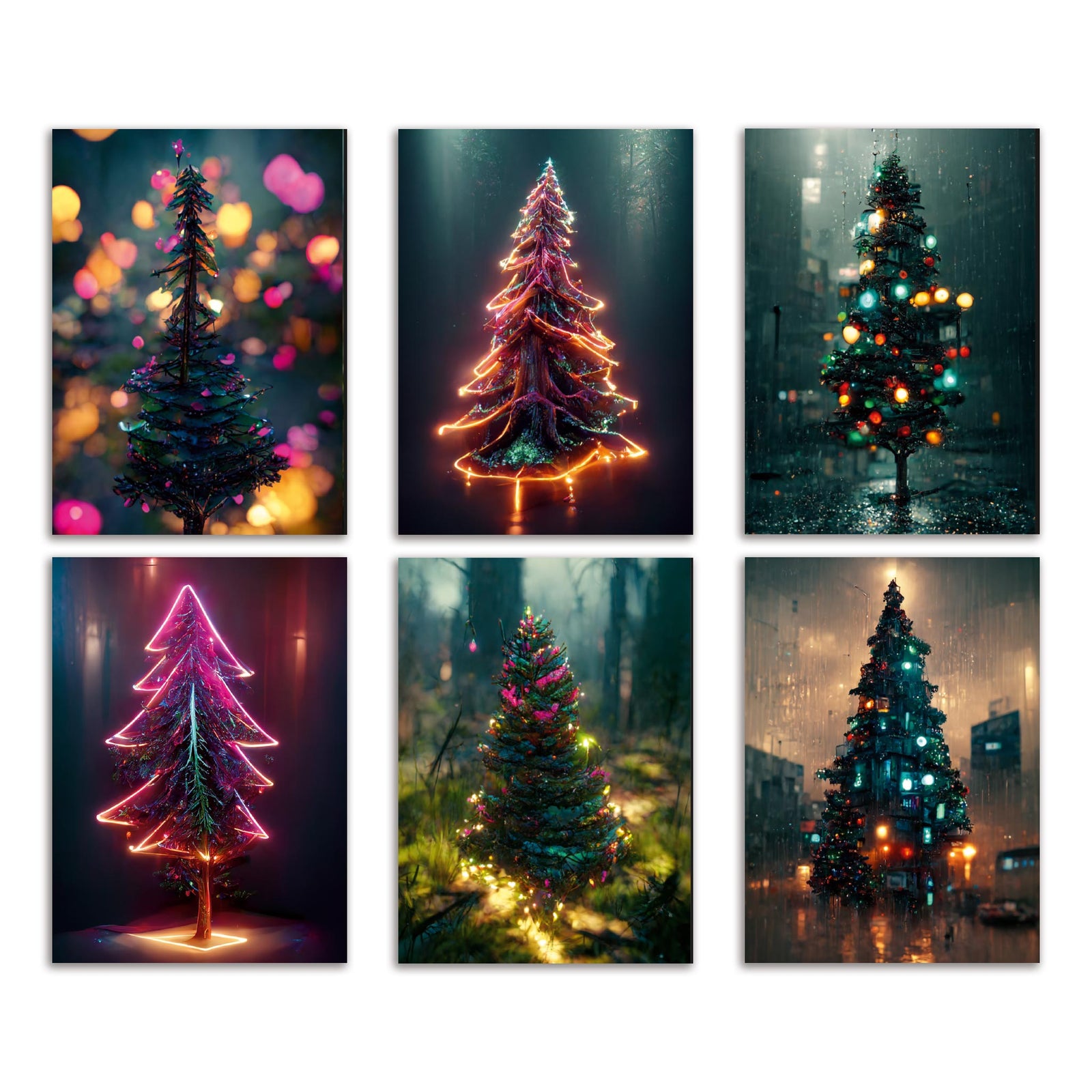 $30 USDTechnicolor Tinsel Christmas Tree Greeting Cards, Set of 24
