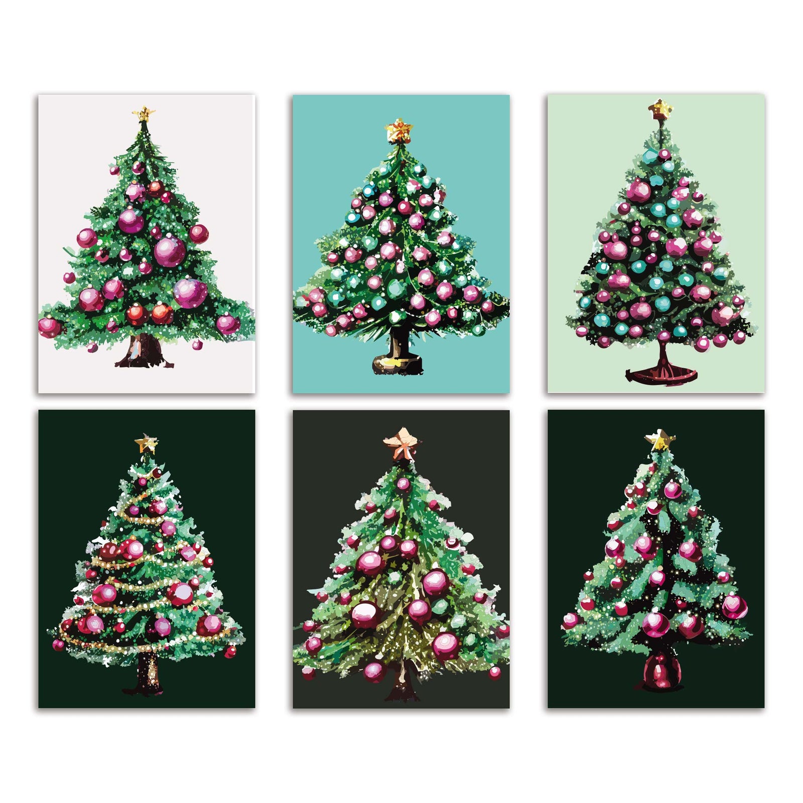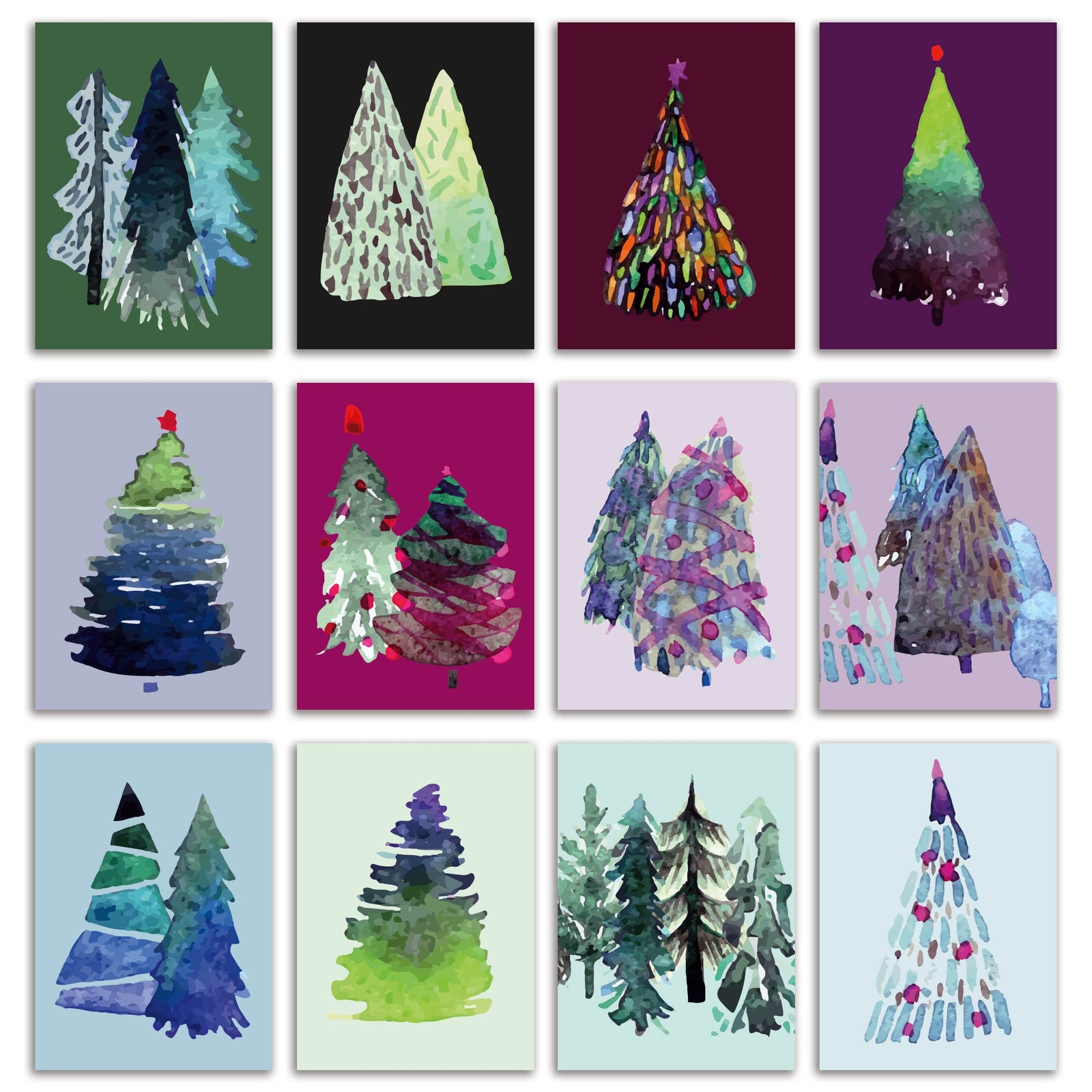 Watercolor Christmas Tree Greeting Cards, Set of 24