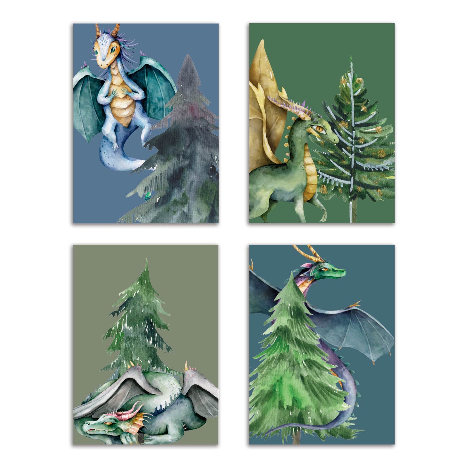 $30 USDWhimsical Dragon Christmas Tree Greeting Cards, Set of 24