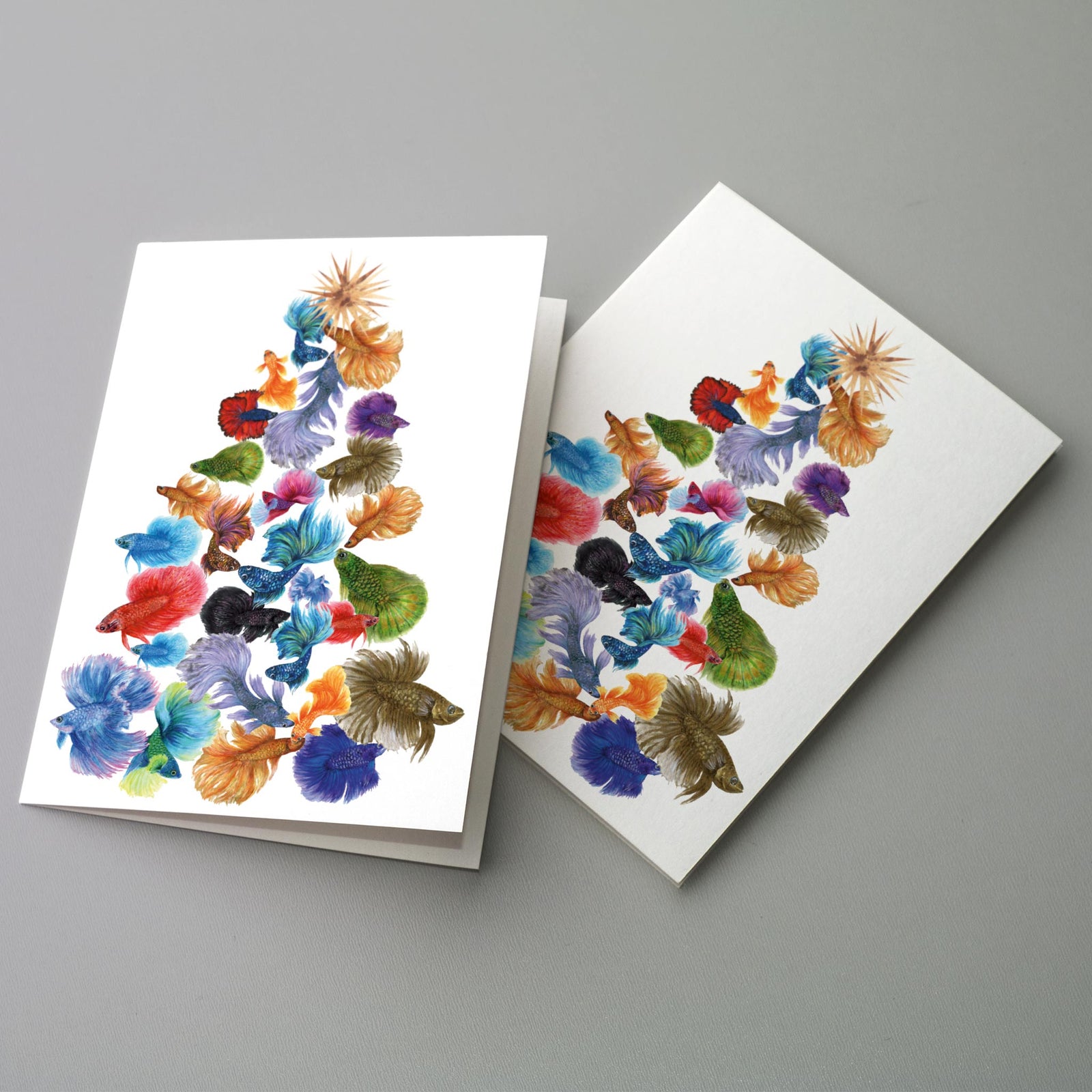 $28 USDTropical Fish Christmas Tree Greeting Cards, Set of 24