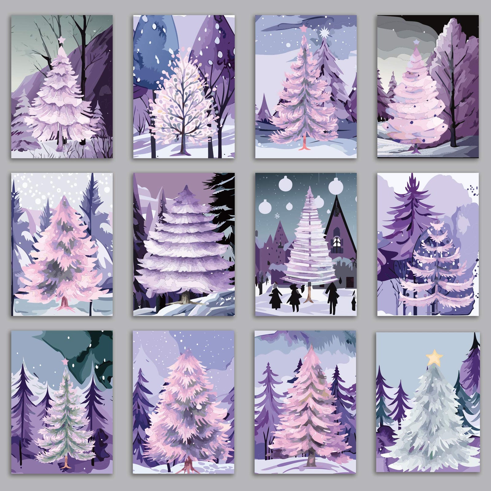 $30 USDGlowing Pink Christmas Tree Greeting Cards, Set of 24