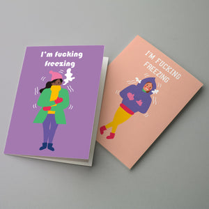 Tell it like it is: winter is effin' cold! This humorous winter time greeting card is a perfect way to send some warm greetings to a frozen world. Whether it is the holidays or the depths of February who couldn't use some connection? Reach out to the neighbor who you haven't seen in weeks because we all are FUCKING cold!!!