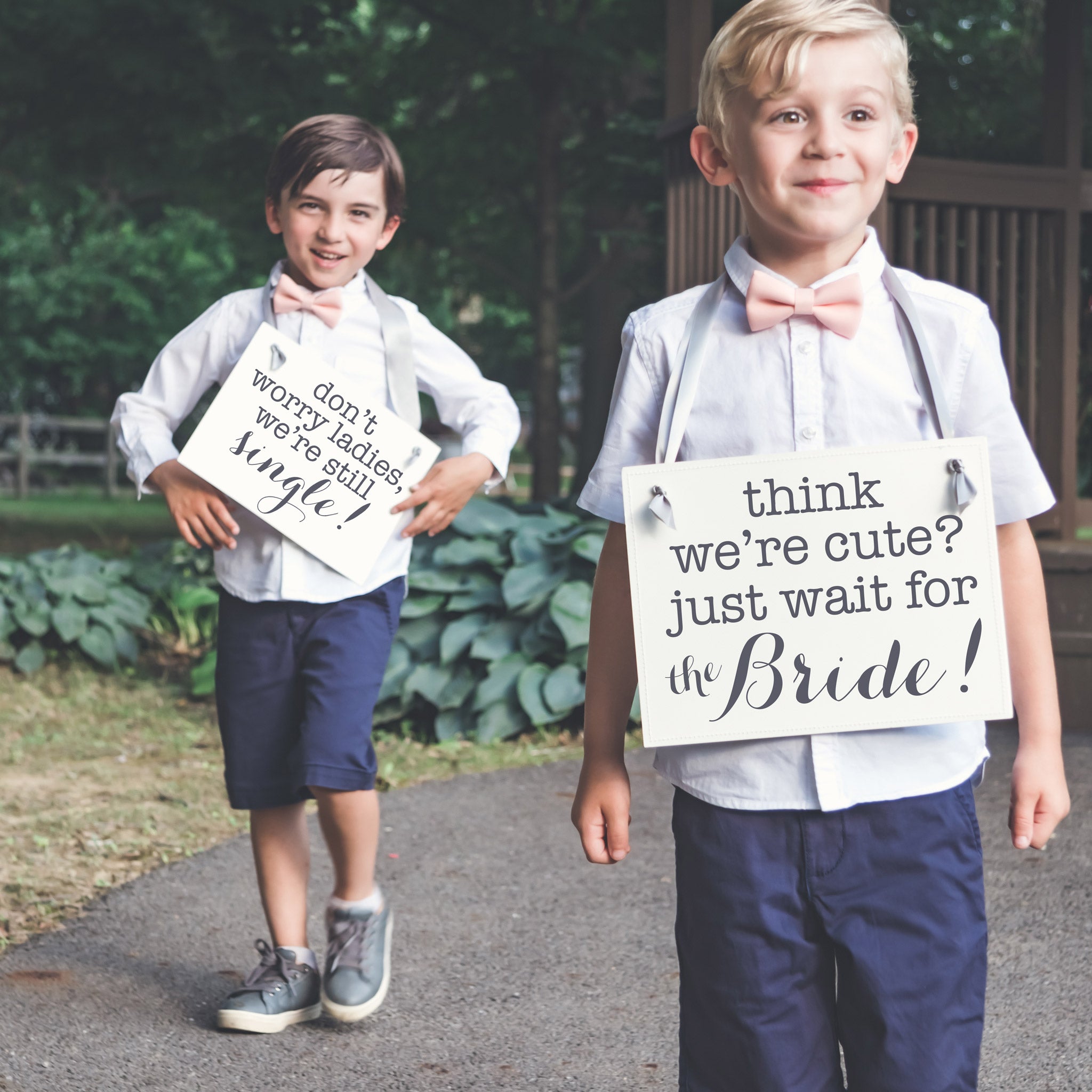 This playful wedding banner set gives your ring bearer or flower girl a moment that steals the show. Cheeky phrases and sweet style bring laughs and charm to your ceremony walk. A fun way to kick off the celebration and create memories guests won't forget.